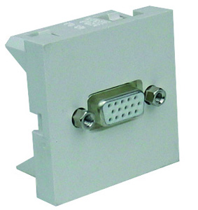 Adaptateur à encastrer au format 45x45 combinant VGA femelle HD15 et Jack 3,5 mm stéréo femelle. Cordon de 0,20 m. Idéal pour les salles de classe et espaces multimédia.