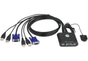 Le mini-switch KVM Aten 2 ports USB (CS22U ou CS62US) permet de contrôler 2 PC depuis une seule console écran/clavier/souris. Câbles intégrés, alimenté par USB, commutation au clavier ou télécommande. Pour établissements scolaires et collectivités.