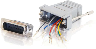 L’adaptateur à câbler DB15/RJ45 est un connecteur de conversion permettant d’interconnecter un équipement Sub-D 15 broches avec un câble réseau RJ45 standard (8 fils connectés). Disponible en version DB15 mâle vers RJ45 femelle (réf. 202015) ou DB15 femelle vers RJ45 femelle (réf. 202016), il est entièrement câblable à la main pour s’adapter à tout type de câblage personnalisé grâce à l’outil d’extraction 503025.