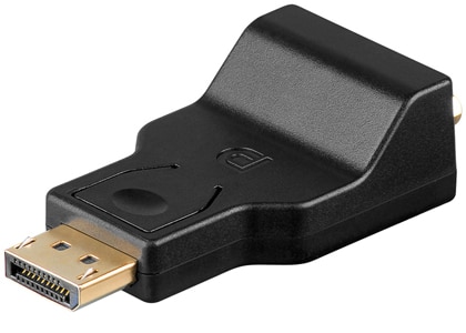Adaptateur monobloc DisplayPort mâle vers VGA femelle, pour connecter un écran VGA ou vidéoprojecteur sur une sortie DisplayPort.
