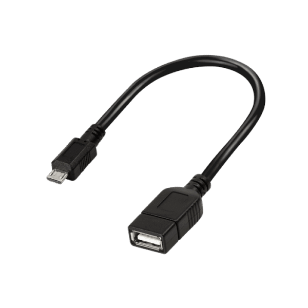 Adaptateur OTG permettant de connecter des périphériques USB à un appareil Micro USB.