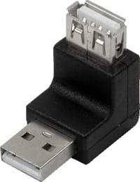 Adaptateur USB 2.0 A vers A mâle/femelle coudé à 90° ou 270°. Transforme un cordon droit en cordon coudé. Compatible USB 2.0 et USB 1.1, débit jusqu'à 480 Mbps. Idéal pour les connexions en espace restreint dans les salles informatiques.