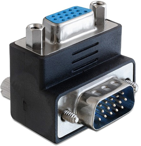 Adaptateur VGA HD15 mâle/femelle coudé à 90° ou 270° pour réduire l'angle du cordon VGA. Avec verrouillage à vis. Idéal quand la place manque à l'arrière du PC ou de l'écran.