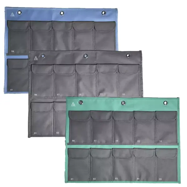 L’utilisation reste simple et fluide. Les pochettes se ferment par velcro, sans mécanisme complexe. Les emplacements numérotés facilitent l’identification et assurent un rangement clair, même dans des environnements très fréquentés.