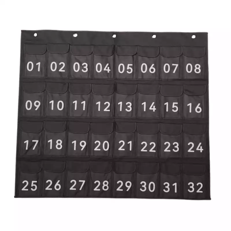 L’utilisation est simple et rapide. Chaque pochette se ferme par velcro, sans manipulation complexe. La numérotation individuelle facilite l’identification et permet une gestion fluide du rangement, aussi bien pour les élèves que pour les encadrants.