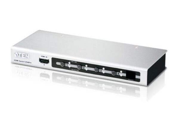 Le switch HDMI Aten VS481A (4 ports) ou VS0801H (8 ports) permet de connecter plusieurs sources HDMI sur un seul écran ou vidéoprojecteur. Avec télécommande incluse, résolution HDTV jusqu’à 1080p et alimentation externe, ces commutateurs HDMI sont conçus pour simplifier la gestion des sources audiovisuelles dans les espaces de présentation professionnels.