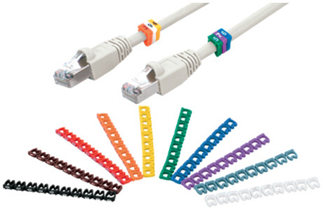 Kit de 100 bagues d'identification colorées pour câbles de 5,6 à 7,4 mm, numérotées de 0 à 9, en plastique souple avec fixation par clip.
