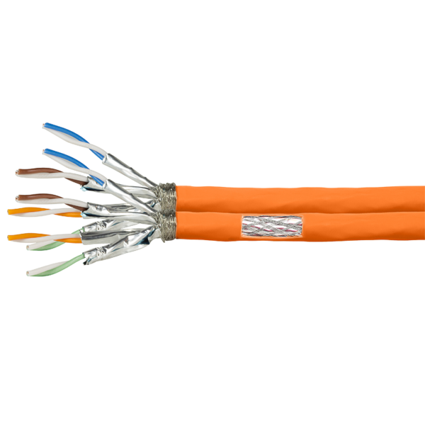 Le câble 2x4 paires Cat7 S/FTP LSOH orange LogiLink CPV0063 est un câble monobrin AWG23 100m, 1000MHz, 10 Gigabit avec blindage PIMF et gaine LSOH. Conçu pour le câblage duplex des établissements scolaires et collectivités.