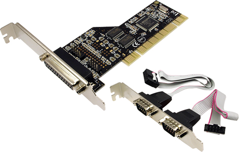 Carte PCI 32/64 bits ajoutant 2 ports RS232 (DB9M) et 1 port parallèle (DB25F). Certifiée WHQL. Livrée avec câble imprimante et CD driver. Pour PC en milieu scolaire et administratif.