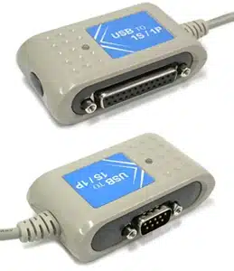 Convertisseur USB permettant de connecter un périphérique série et une imprimante parallèle.