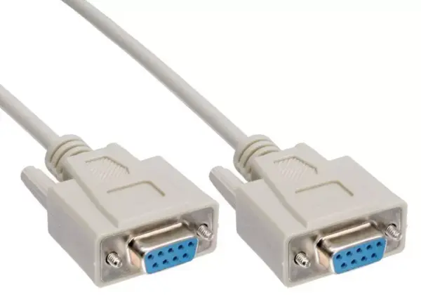 Le cordon RS232 croisé DB9F/DB9F (AT à AT) est un câble de liaison série null-modem permettant de connecter directement deux équipements dotés de ports COM Sub-D 9 points femelle. Son schéma de câblage croisé spécifique (1-(7,8) ; 2-3 ; 3-2 ; 4-6 ; 5-5 ; 6-4 ; (7,8)-1 + masse) assure une communication série directe sans modem intermédiaire.