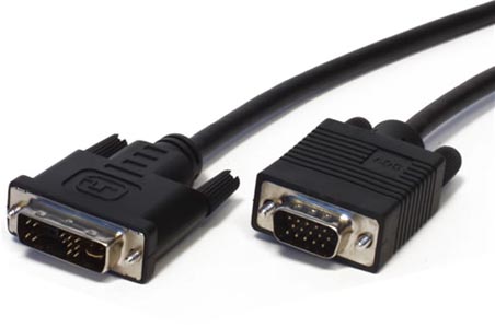 Le cordon DVI mâle vers HD15 VGA mâle est un câble de raccordement bidirectionnel permettant de connecter un écran DVI sur un port VGA ou un écran VGA sur un port DVI. Il nécessite un port DVI de type I supportant le signal numérique et analogique (avec picots autour de la lamelle), garantissant une compatibilité avec les cartes graphiques équipées de ce type de port.