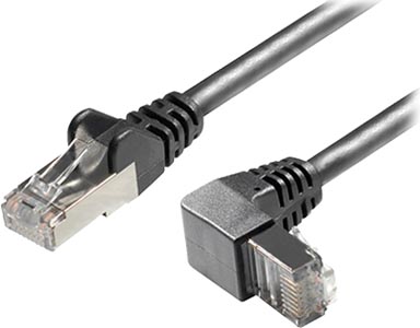 Le cordon RJ45 CAT.6A S/FTP coudé Bas/Normal noir offre un débit jusqu'à 10 Gbps avec double blindage PIMF et une prise coudée vers le bas pour un gain de place. Idéal pour les panneaux de brassage des établissements scolaires et collectivités.