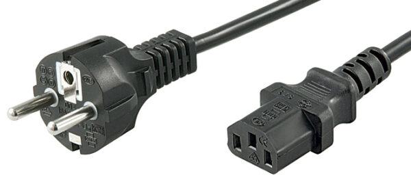 Cordon secteur noir droit/droit 1,80 m avec fiche française CEE7/7 (2P+T mâle) vers connecteur C13 femelle, câble H05VVF 3x0,75 mm², 10A/2300W max. Idéal pour alimenter les équipements informatiques des établissements scolaires et collectivités.