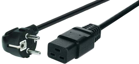 Le cordon secteur C19 noir est un câble d’alimentation haute puissance reliant une prise secteur CEE7/7 2P+T coudée (prise murale française/européenne) à un connecteur IEC C19 femelle. Avec son câble H05VVF 3×1,5 mm², sa capacité de 16A sous 250V et sa gaine PVC noire, il est conçu pour les équipements informatiques et électriques haute puissance des environnements professionnels.