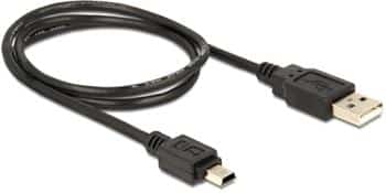 Cordon USB 2.0 type A mâle vers Mini B mâle, coloris noir. Compatible USB 2.0 et USB 1.1, débit jusqu'à 480 Mbps. Disponible en plusieurs longueurs de 0,15 m à 5 m pour connecter appareils photo, lecteurs MP3 et périphériques aux PC.