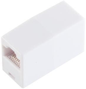 Coupleur RJ45 femelle/femelle blanc pour raccorder deux cordons réseau RJ45. Câblage droit ou croisé, connecteur 8P8C non blindé. Idéal pour prolonger le câblage réseau en salle de classe.