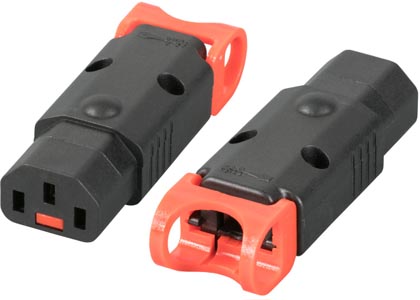 La fiche IEC-Lock+ C13 femelle est un connecteur à câbler verrouillable anti-déconnexion accidentelle. Accepts câbles 3x0,75mm² à 3x1,5mm², 10A/250V (Europe) ou 15A/250V (USA). Pour équipements critiques des établissements scolaires et collectivités.
