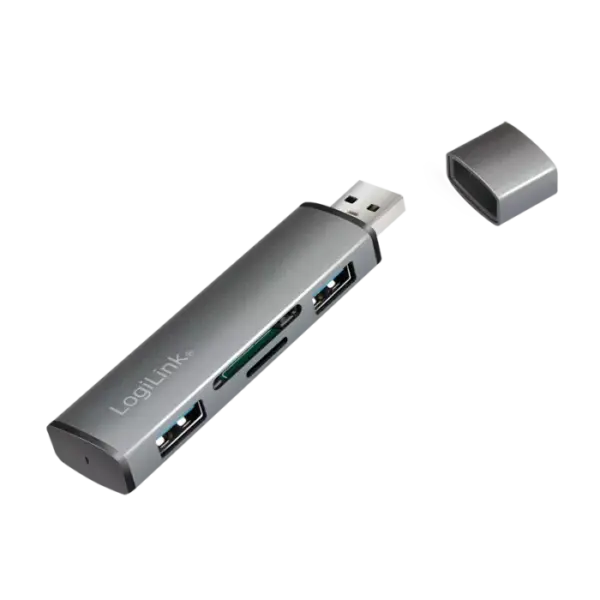 Hub USB 3.2 avec lecteur SD et micro SD intégré pour transferts rapides.