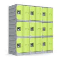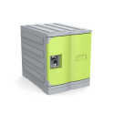JUK 121 est un casier securise modulable en ABS, empilable et verrouillable par cadenas, ideal pour ecoles, gymnases et bureaux.
