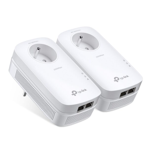 Kit de 2 adaptateurs CPL AV2 2000 Mbps TP-Link TL-PA9025PKIT avec prise secteur passante, 2 ports Ethernet Gigabit, technologie MiMo 2x2, plug and play, pour etendre le reseau dans les etablissements scolaires et collectivites.