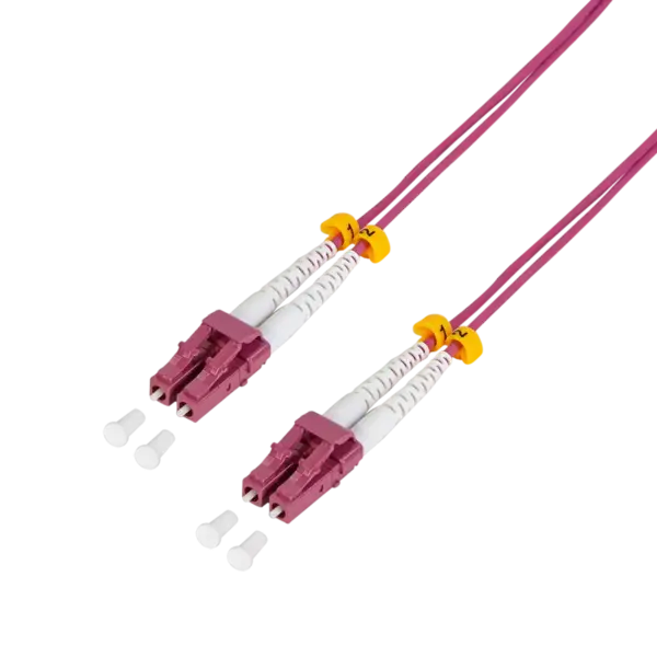 La jarretière fibre optique LC-LC Duplex Multimode OM4 50/125µ garantit un transfert de données jusqu'à 40 Gbps sur 125 m. Gaine LSOH, connecteurs UPC, couleur violet Erika ou turquoise. Idéale pour les infrastructures réseau des établissements scolaires et collectivités.