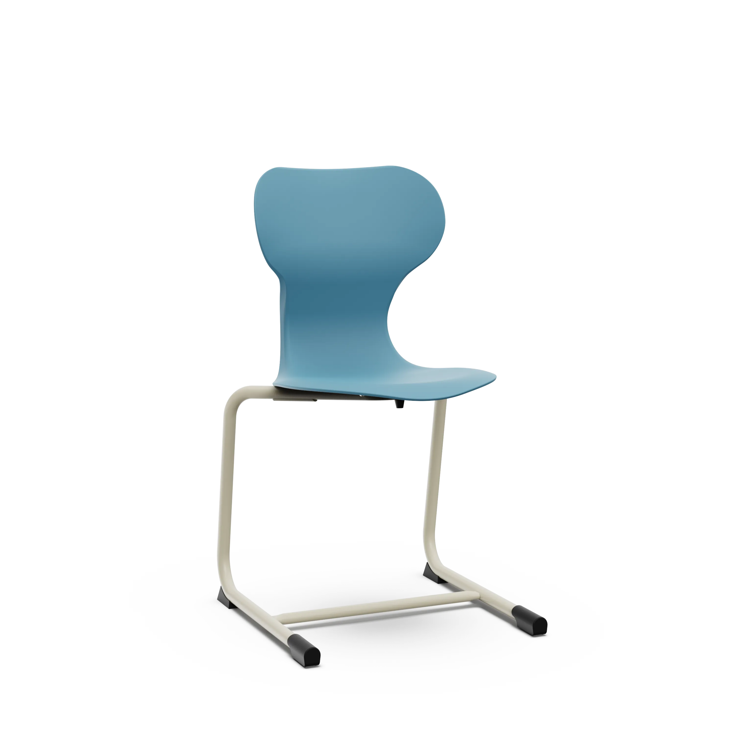 MIA CANTILEVER est une chaise à structure métallique avec assise en polypropylène et dossier courbé, empilable et ergonomique, idéale pour les salles de classe, bureaux et espaces collaboratifs