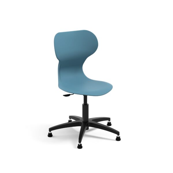 MIA LIFT est une chaise pivotante en polypropylène avec vérin à gaz, base à 5 branches et roulettes Ø65 mm, offrant confort, mobilité et durabilité pour les environnements scolaires et professionnels.