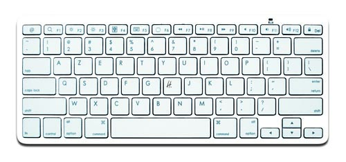 Le mini clavier Bluetooth blanc (réf. 308070) est un clavier compact 78 touches sans fil compatible iPhone, iPad, Windows et Mac. Technologie Bluetooth 2.0, portée 10 m, alimentation 2 piles AAA incluses. Pour les tablettes et postes mobiles des établissements scolaires et collectivités.