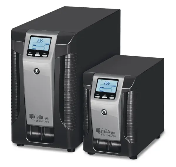 L’onduleur Riello Sentinel PRO est un onduleur online à double conversion (technologie VFI conforme IEC 62040-3) disponible de 700VA à 3000VA. Avec un écran LCD redessiné, un port USB, un slot d’extension pour cartes de communication et une large plage de tolérance de tension d’entrée (140V à 276V), il assure la protection maximale des charges critiques sans jamais solliciter la batterie lors des fluctuations réseau.
