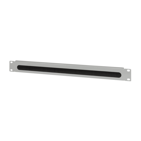 Panneau 1U balai 19" gris clair RAL 7035 pour gestion et passage des câbles en baie. Acier 1,5 mm, brosse plastique. Installation horizontale. Existe en noir (réf. 509470). Marque LOGILINK ORCEB1G.