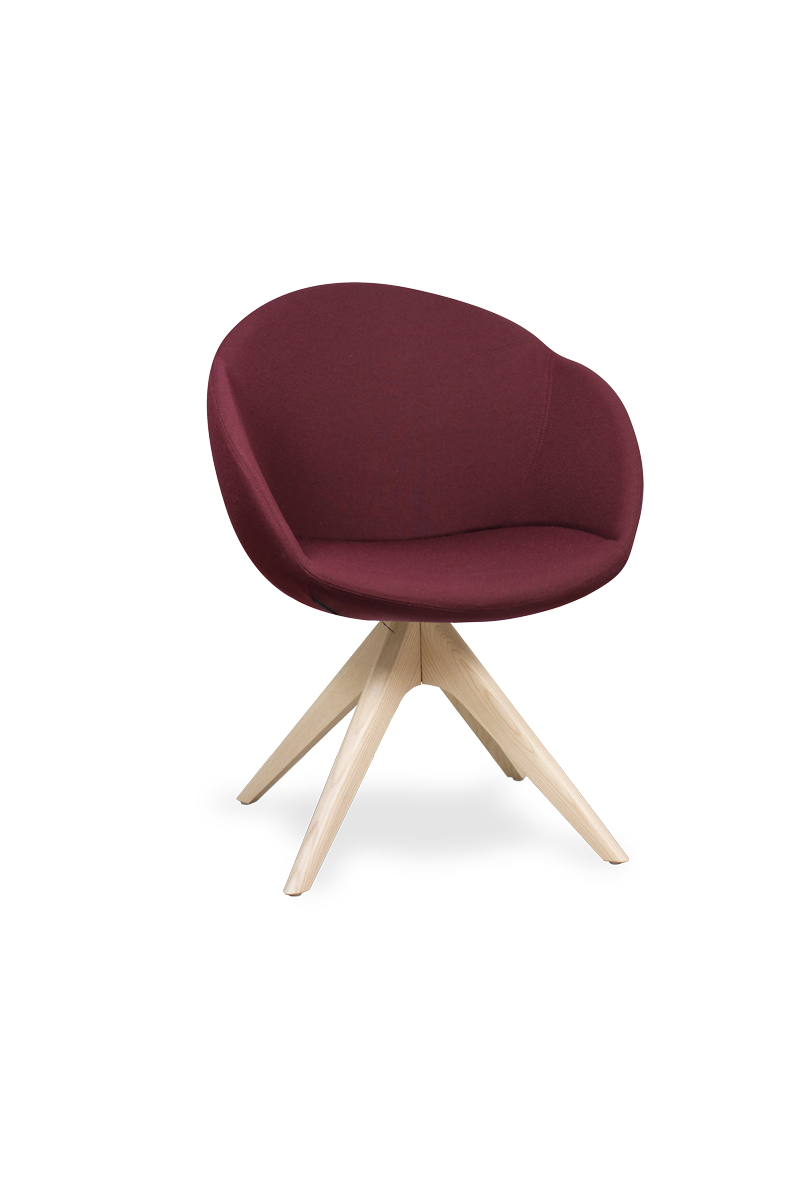 Le fauteuil ZOE PB2 associe une coque enveloppante à une assise pivotante pour offrir un confort optimal dans les environnements de travail, de réunion ou d’accueil. Son piètement bois araignée vissé sur une pièce de liaison aluminium assure une excellente stabilité tout en apportant une touche chaleureuse et élégante. La coque est renforcée par une structure interne en acier et équipée d’une mousse polyuréthane injectée haute densité garantissant un maintien durable et agréable.