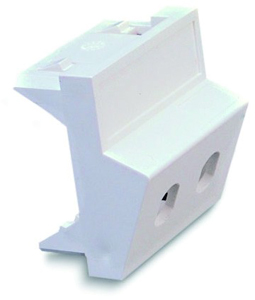 Plastron vide 45 x 45 mm avec 2 empreintes ST pour traversées de cloison. Pour fixation dans boîtier mural, goulottes et panneaux de câblage structuré.