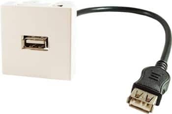 Plastron USB avec cordon intégré permettant une connexion USB déportée sur boîtier mural.