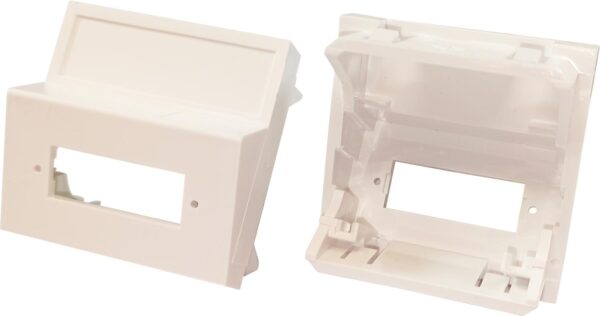 Les plastrons SC Duplex vides CAFCA (45x45 réf. 702012 et 22,5x45 réf. 702013) accueillent une empreinte SC duplex ou LC Quad pour traversée de cloison fibre optique. Pour fixation en boîtier mural et goulotte des établissements scolaires et collectivités.