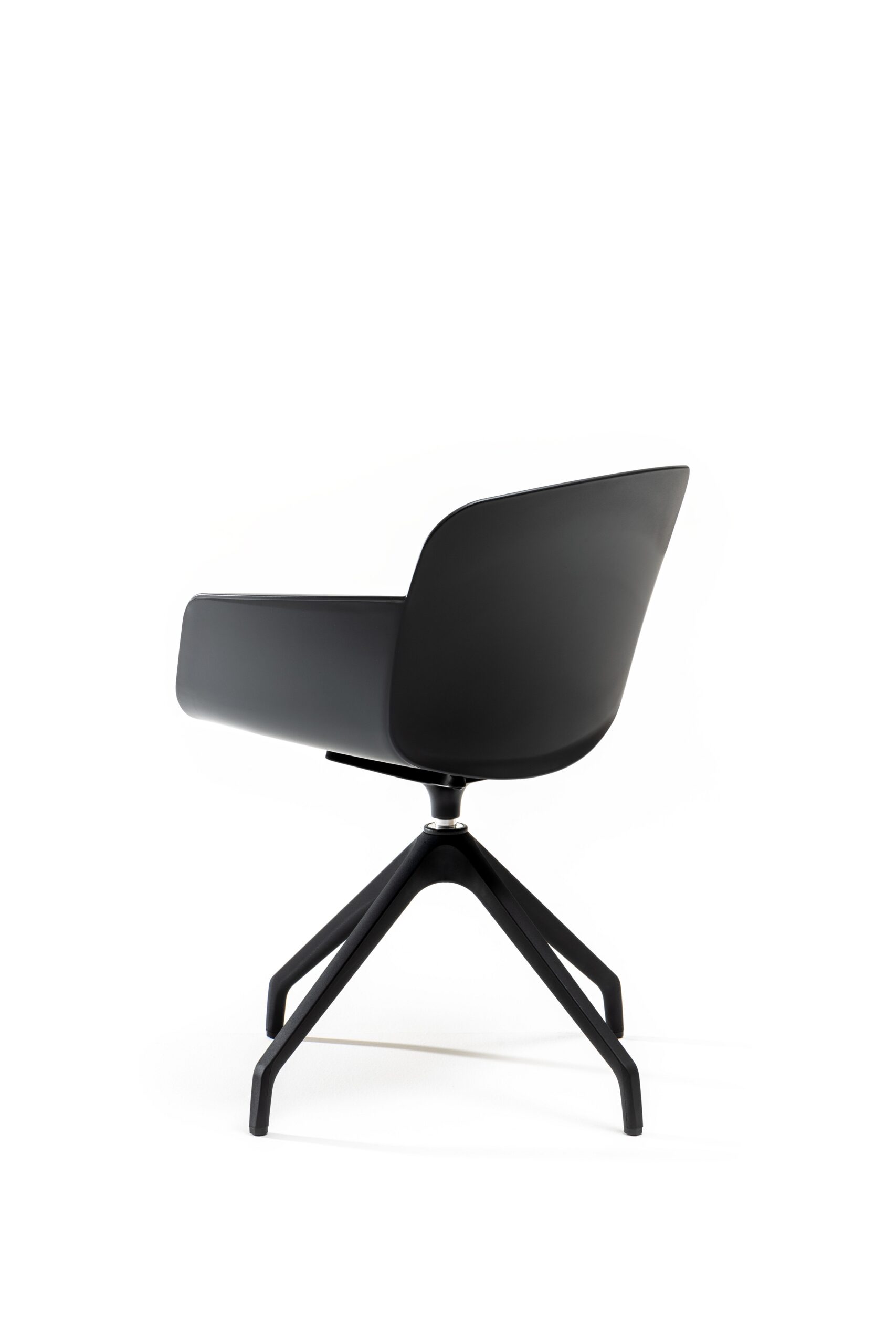 Fauteuil YOLO avec piètement central type araignée en acier et aluminium, conçu pour les espaces d’accueil et de réunion.