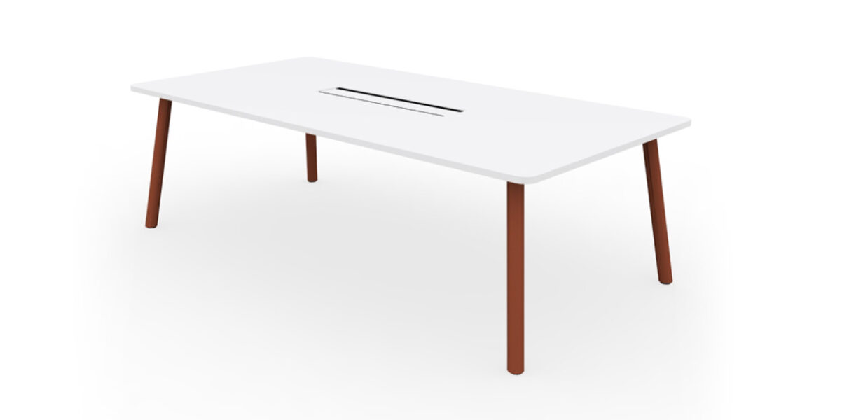 Table ABA RÉUNIONS : table de réunion élégante et fonctionnelle, conçue pour s’intégrer dans les environnements professionnels les plus exigeants. Son design distinctif se démarque par ses pieds inclinés et son système de câblage intégré, garantissant confort, praticité et esthétique.
