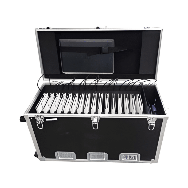 TIP 20 est une valise multimedia flight case permettant de ranger, transporter et charger jusqu’a 20 tablettes hybrides 11.6 pouces.