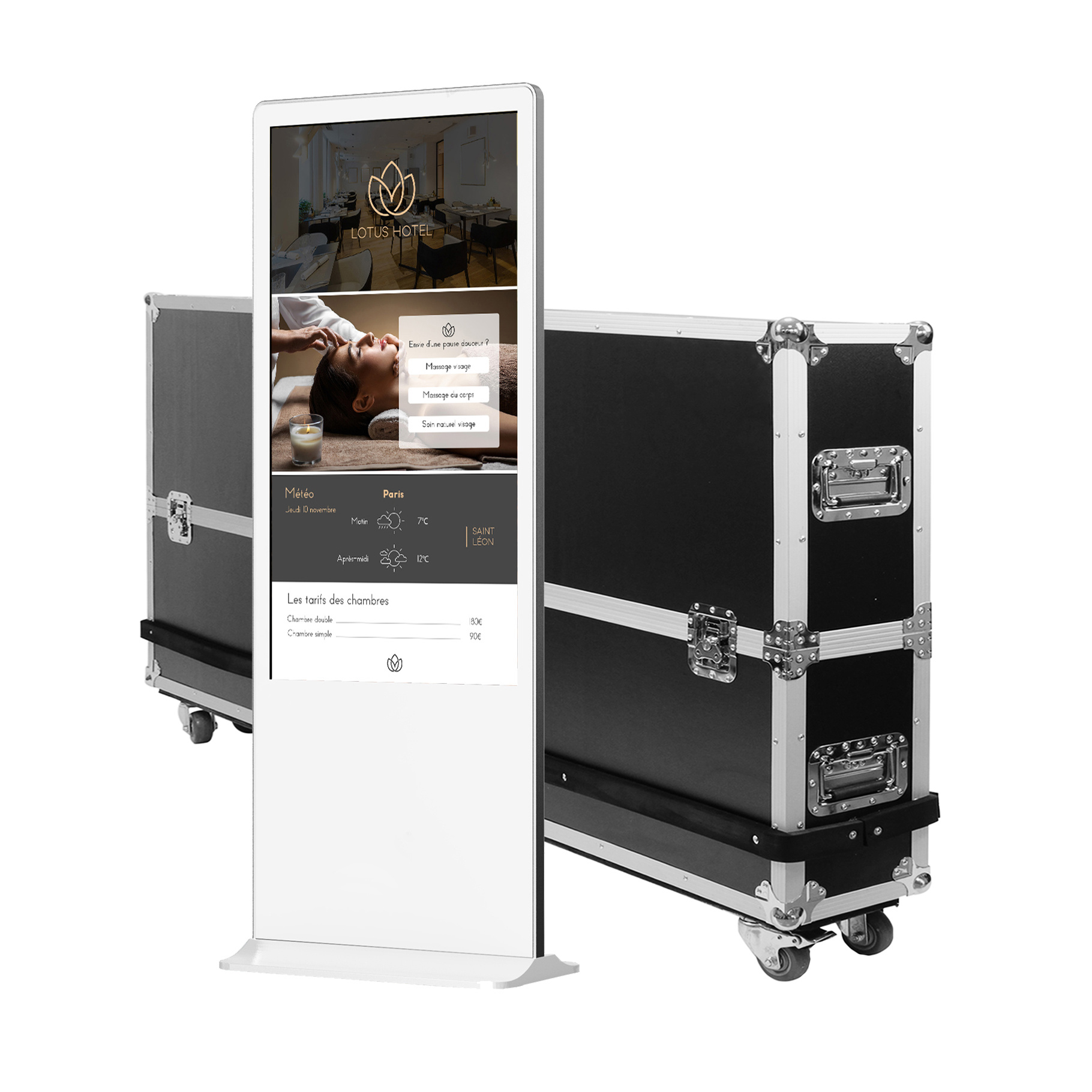 Totem vidéo tactile 43’’ Full HD (500 cd. 24h/7j. Blanc. PCAP. avec Flightcase) : Alliez interactivité. performance et design avec le totem tactile Kimex 43’’. idéal pour des présentations dynamiques et une communication digitale haut de gamme.
