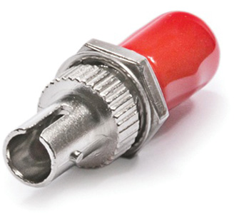 Traversée de cloison ST/ST Simplex monomode 9/125 µm pour tiroir optique. Ferrule céramique avec contre-écrou. Pour installation en panneau, boîtier ou tiroir 19". Marque CAFCA.